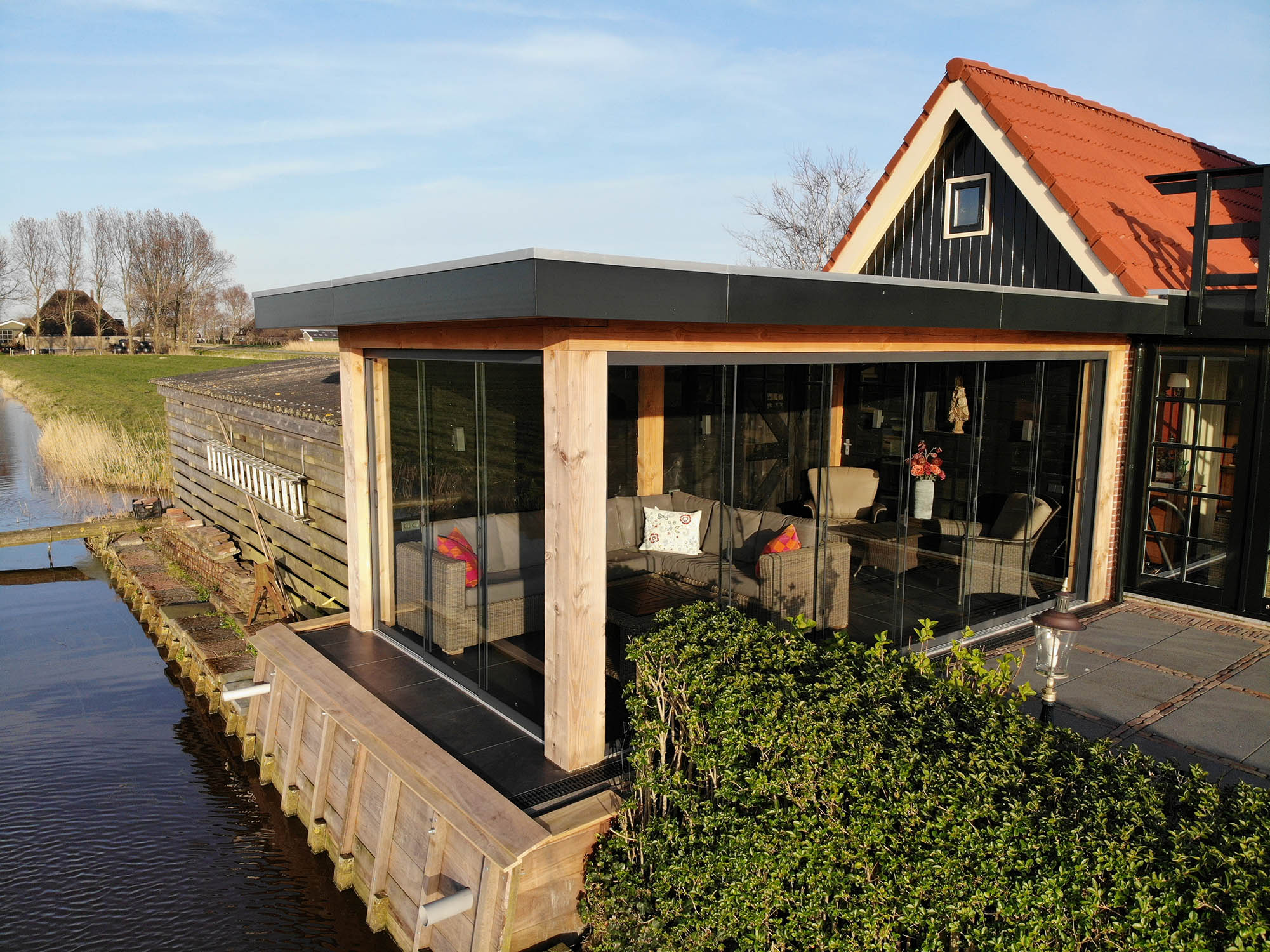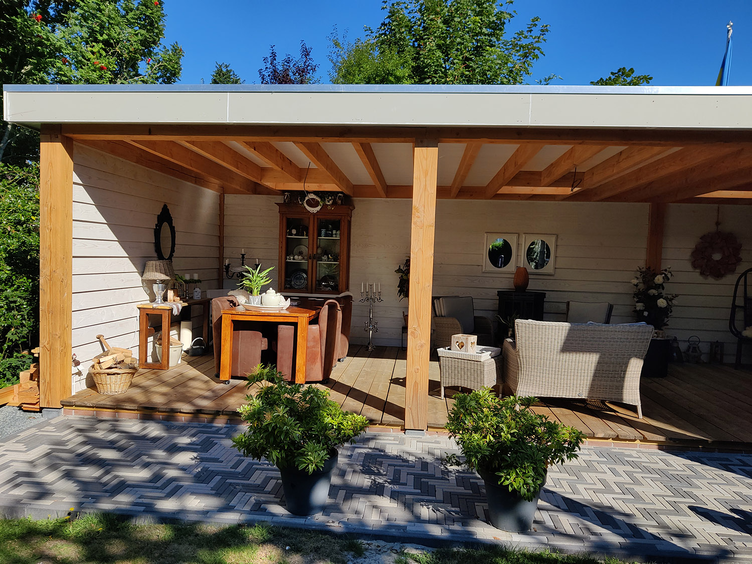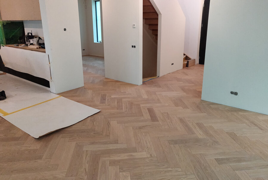 We hebben gekozen voor extra dikke balken voor een mooie massieve look waar de balken echt uitspringen. Alles is volgens nieuwbouwnormen geïsoleerd, er zit een warmtepomp in en vloerverwarming.