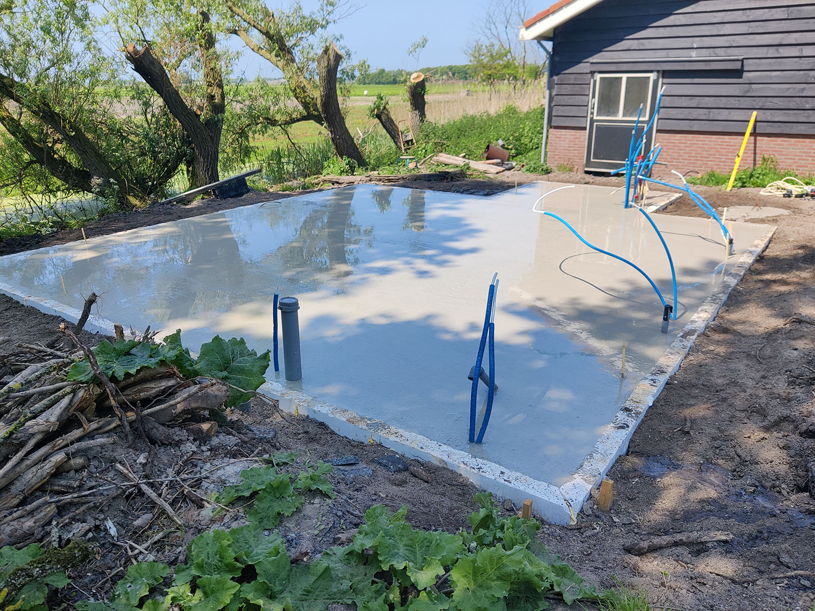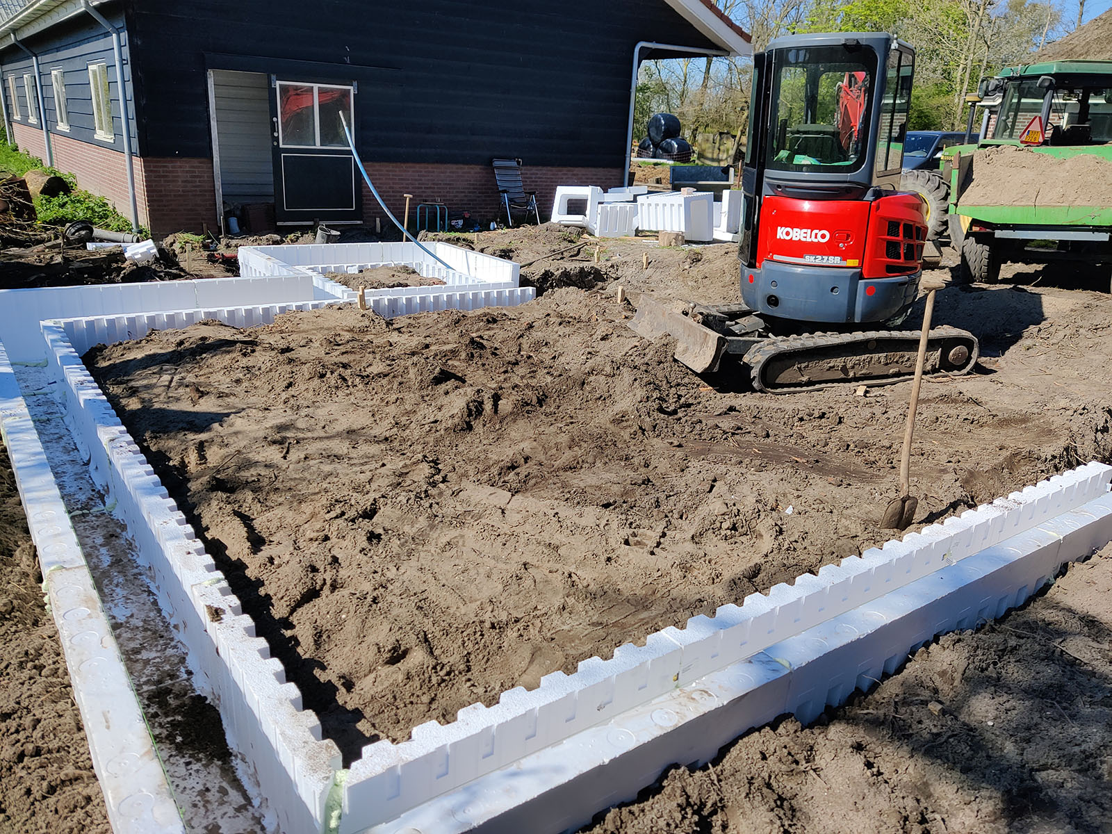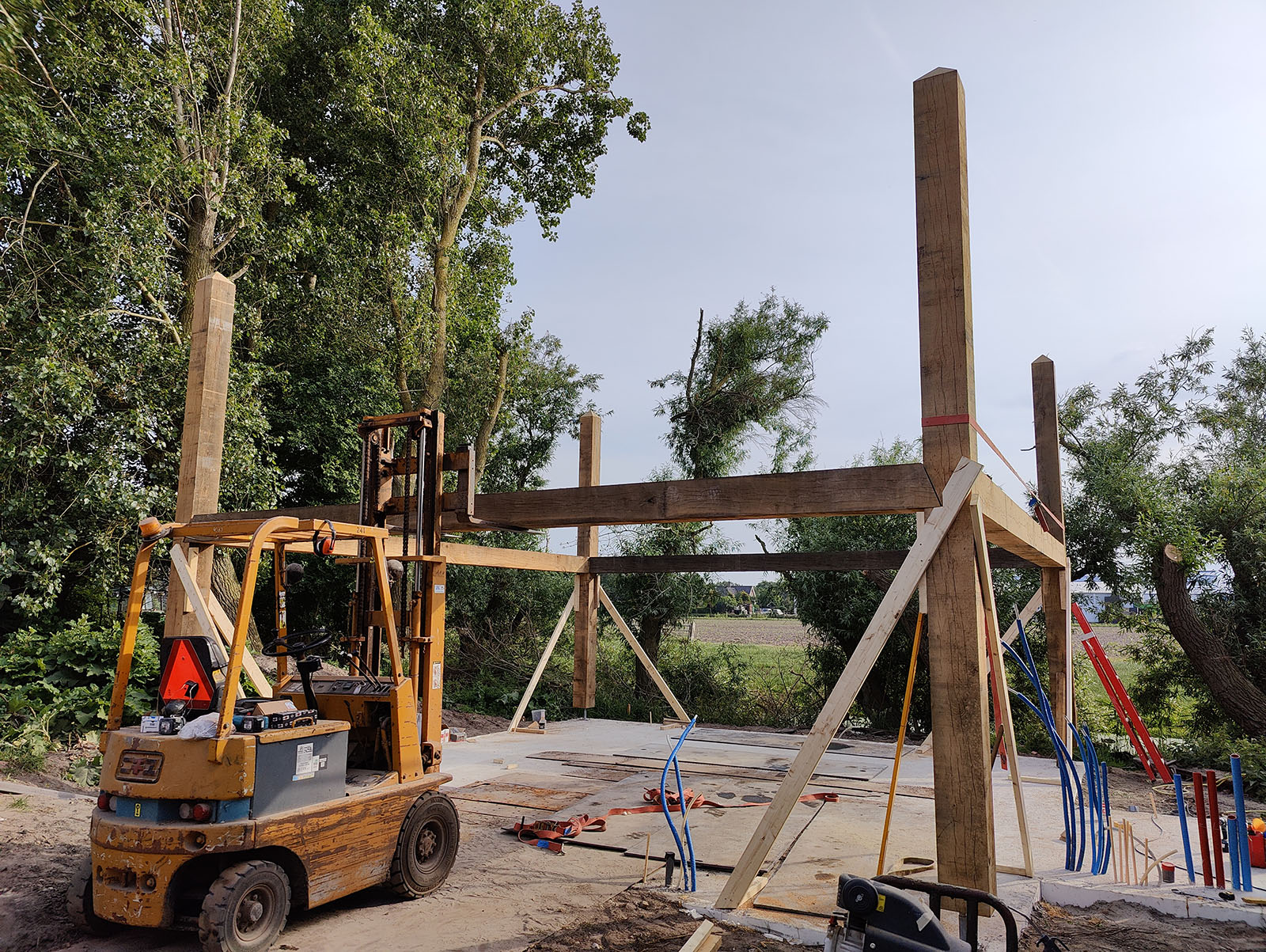 We hebben deze hooibergwoning samen met de klant helemaal uitgewerkt in een 3D tekening. De klant gaf hier akkoord op en zijn we begonnen met de fundering en de eikenhout constructie.